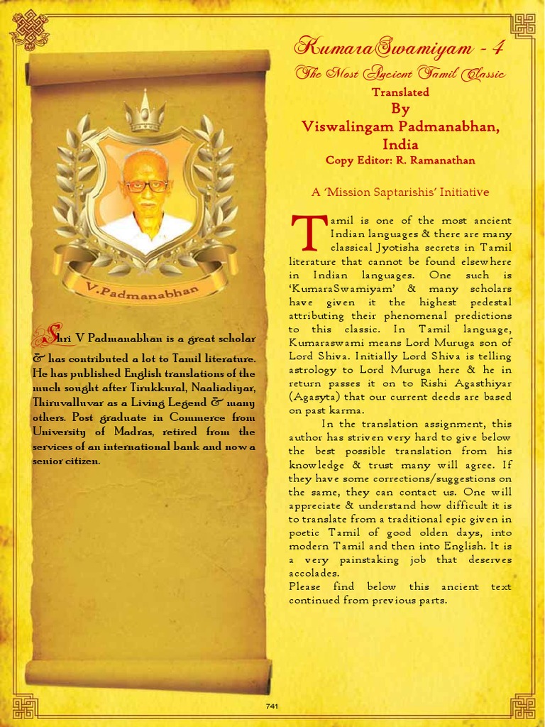 KumaraSwamiyam An Ancient Tamil Classic Translated by ... Mar 01, 2009 · KumaraSwamiyam An Ancient Tamil Classic Translated By Viswalingam Padmanabhan, India Copy Editor: R. Ramanathan, India T amil is one of the most ancient Indian languages & there are many classical...