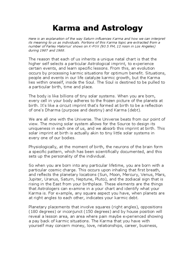 How to Use Birthstones, Gemstones and Chinese Astrology or Vedic ... If you want THAT sort of advice, as well as particular things to do every change to change your fortune for the better, then get yourself a Karma Calculator reading because every year tells you what to do...unless it's a great year in which case it just tells you to relax and enjoy. How does the Chinese astrology Karma Calculator method work? The Chinese astrology Karma Calculator method relies on the lunar calendar rather than the positions of planets and astrological signs as used in Western astrology and with Indian Vedic horoscopes. The Karma Theory in vedic astrology part 1: Astrology and karma karma theory in astrology In Astrological language, we refer Saturn & Mars in the top category for karaka of physical karmas, Means those karmas we actually do or perform in the material world with our fully conscious mind based on Some of our action plans and logic involvement. All these Karmas are based on physical means and motives.