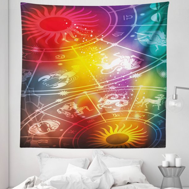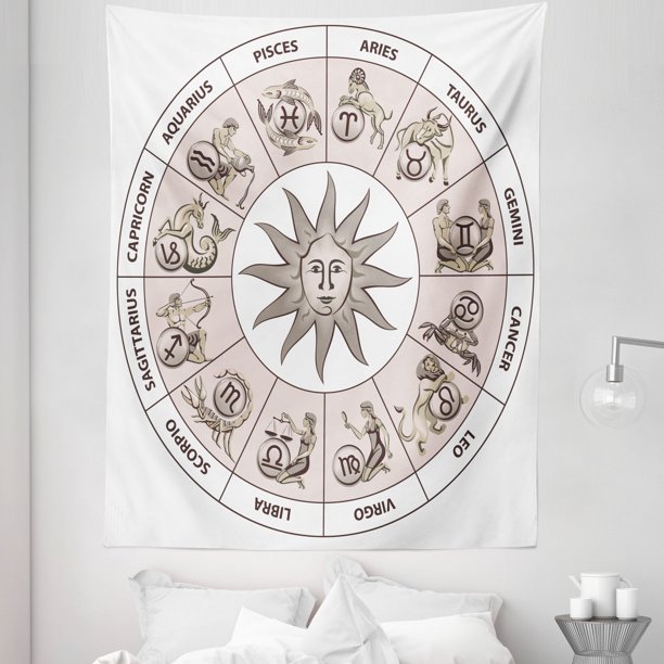 Ambesonne Astrology Tapestry, Horoscope in a Circle Around The Sun Sign with Birth Zodiac Constellation of Fortune, Wall Hanging for Bedroom Living ...