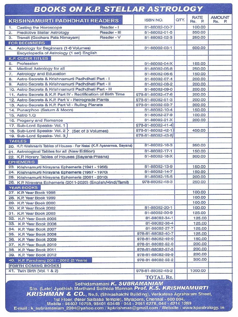 PDF- krishnamurti paddhati (KP) Astrology Free Download KP Astrology ( K. S. Krishnamurty ) PDF Free Download, KP Astrology ( Chandrakant R. Bhatt ) PDF Free Download, Disclaimer: All information / material available on this website or the links provided on the site are for educational and informational purposes only.