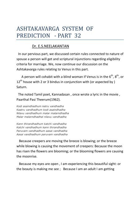 Free Vedic Horoscopes | Ashtakavarga Predictions எண் கணிதம். Complete Horoscopes. Analysis, Predictions. Wealth- Dhana Bhava. Marriage- Kalathra bhava. Career- Jeevana Bhava. ARTICLES. Articles on Marriage Matching Astrology. Articles on Vedic Astrology.