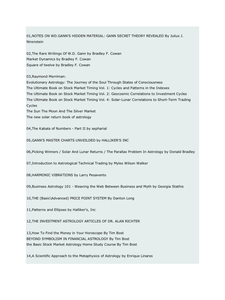 Gann Secrets Revealed - Booktopia Gann Secrets Revealed · Beyond Symbolism in Financial Astrology · This Product Is Categorised By. Gann Secrets Revealed: Beyond Symbolism in Financial Astrology ... "Gann Secrets Revealed" is a lofty title, compounded by the subtitle, which promises to talk about the "Law of Vibration Trading Tools that connects Planetary ...