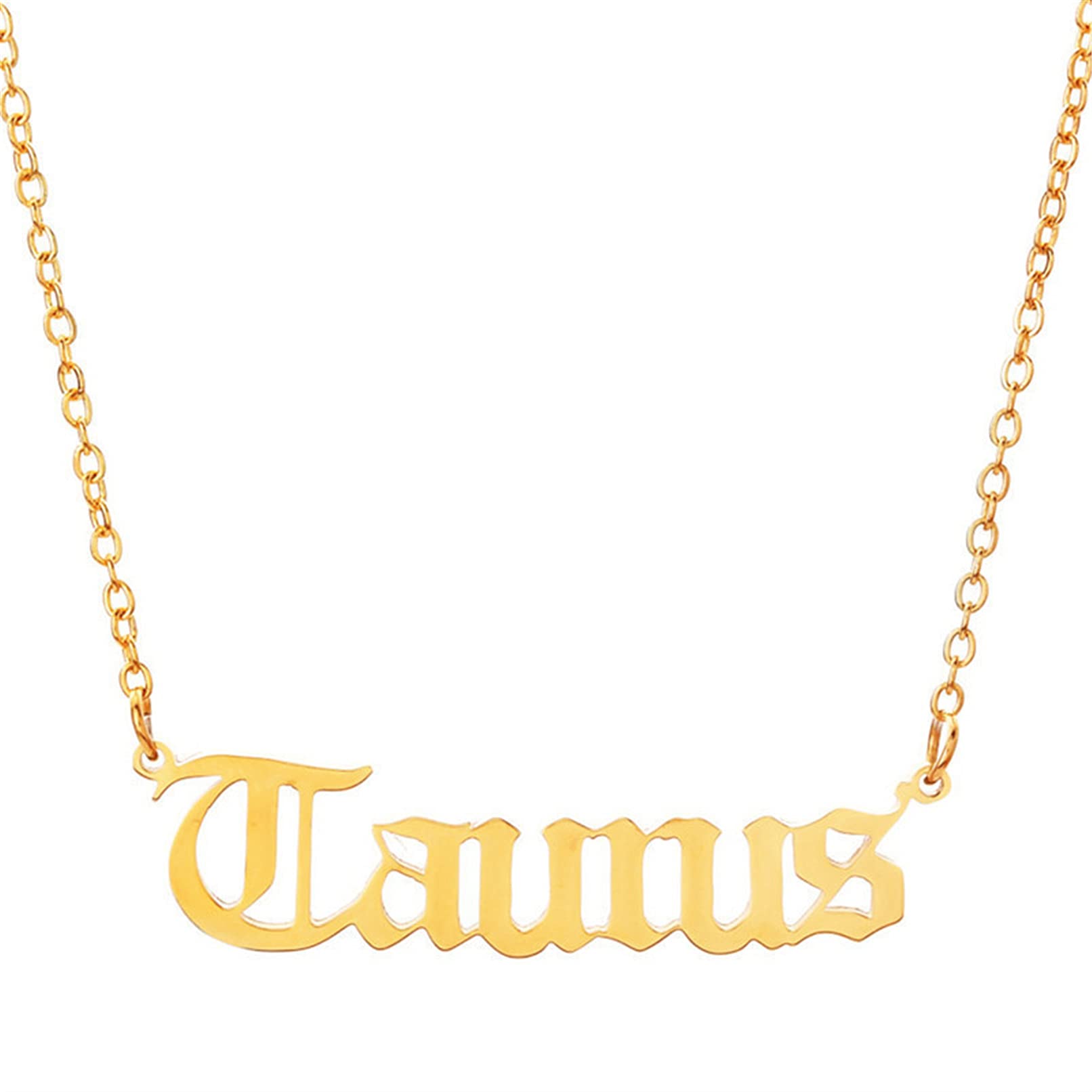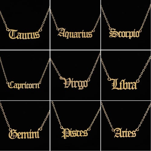 VLINRAS Old English Zodiac Necklace for Women, Horoscope Birth Star Sign Letter Astrology Constellation Necklace Birthday Gift